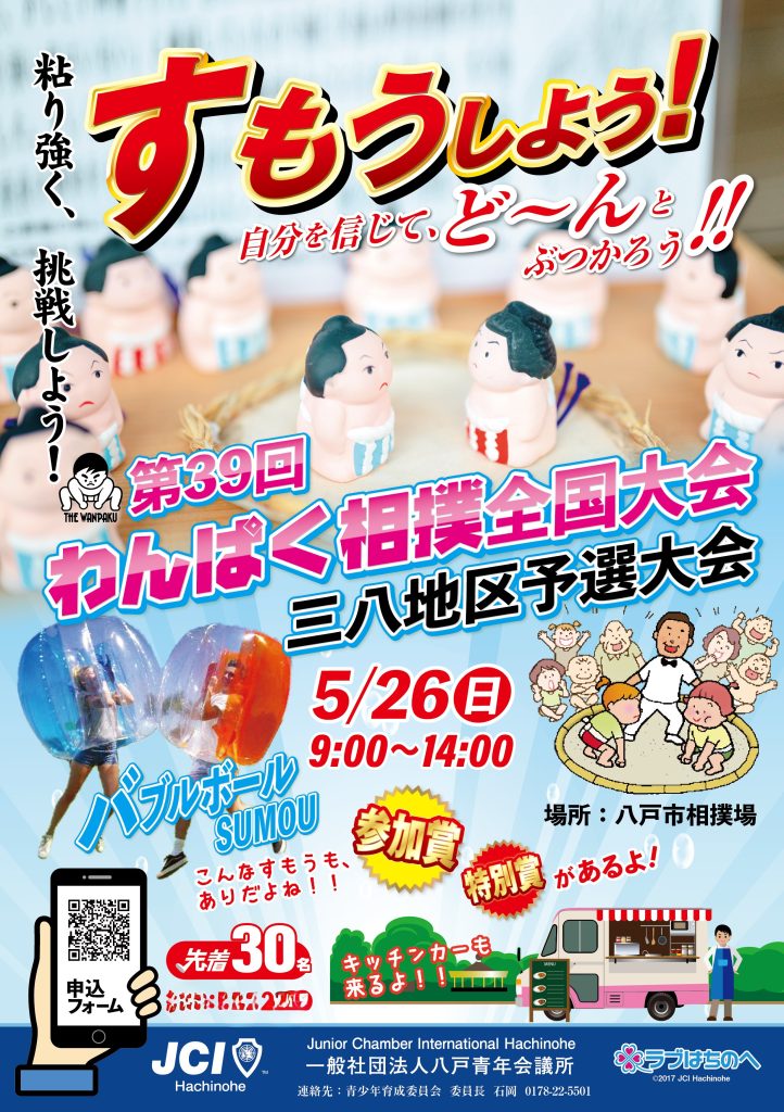わんぱく相撲大会の取り組みは例年、子ども達の心身の鍛練を促す契機として青森県相撲連盟八戸支部、三戸支部と八戸青年会議所が共同主催してきました。