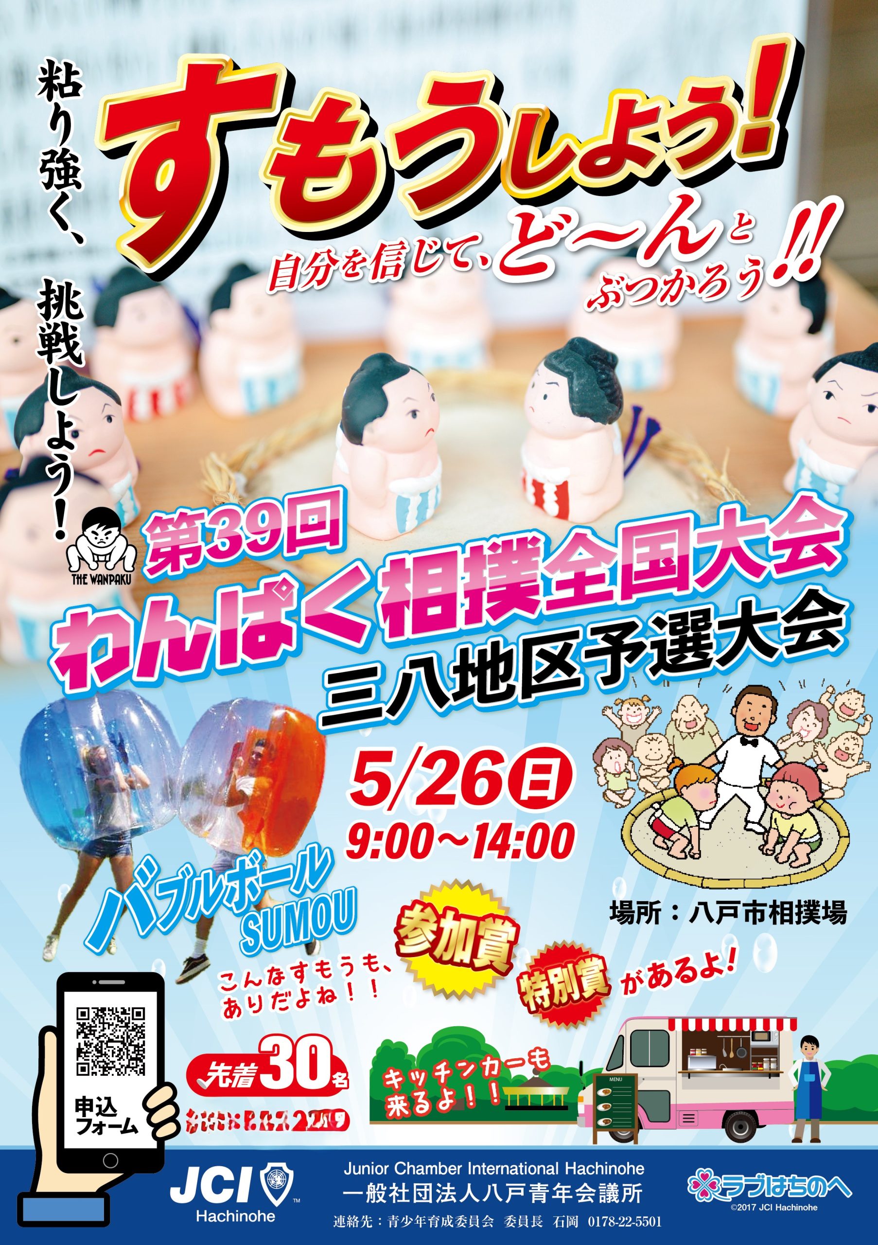 また、キッチンカーも来てみんなで楽しめる大会になってるよ!※バブルボール相撲は定員30名で、無料でお申込みいただけます。